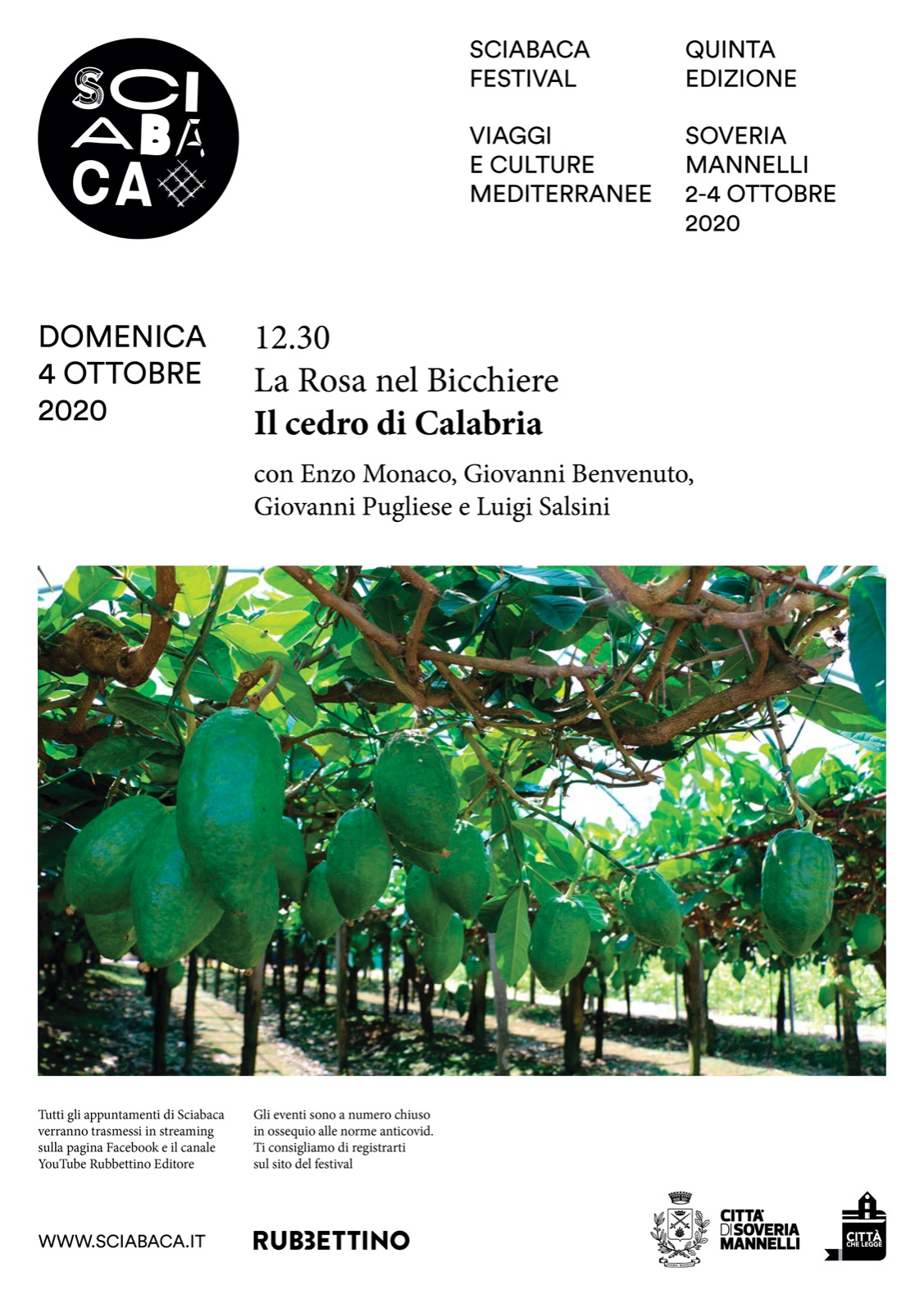 Domenica 4 ottobre alle 12.30, presso La Rosa nel Bicchiere di Soveria Mannelli (Cz), il cedro della Riviera dei Cedri sarà protagonista in un evento in programma nel festival Sciabaca, organizzato dalla casa editrice Rubbettino, che si terrà dal 2 al 4 ottobre. Saranno presenti: il giornalista e presidente dell’Accademia Italiana…